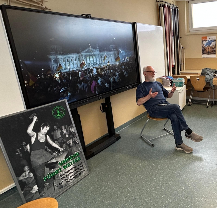 Im Rahmen des Geschichte-Unterrichts war Christoph Krause zu Gast bei der Klasse 10a. Der Pfarrer i.R. beteiligte sich 1989 an der Friedlichen Revolution in Leipzig. Er schilderte den Schülerinnen und Schülern seine Erlebnisse in der DDR und seine Beweggründe sich an der Demonstration zu beteiligen.
